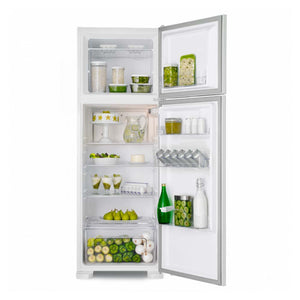 Sistema Cycle Defrost manija empotrada congelador con 86 litros de capacidad Estantes removibles en las puertas del refrigerador. Bandejas de alambre extraíbles con altura ajustable Traba-botellas. Huevera removible para 12 unidades. Cajón transparente de frutas y legumbres Porta-latas reversible para 5 unidades. Estante en la puerta del congelador.Especificaciones