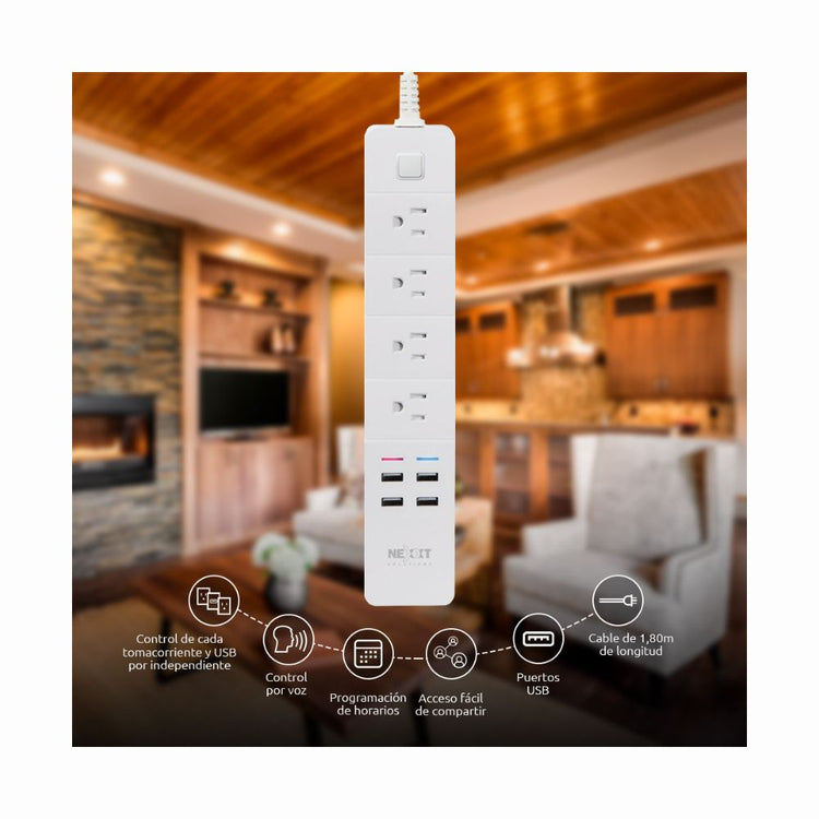 Regleta Inteligente WiFi para Interior con Puertos USB Nexxt