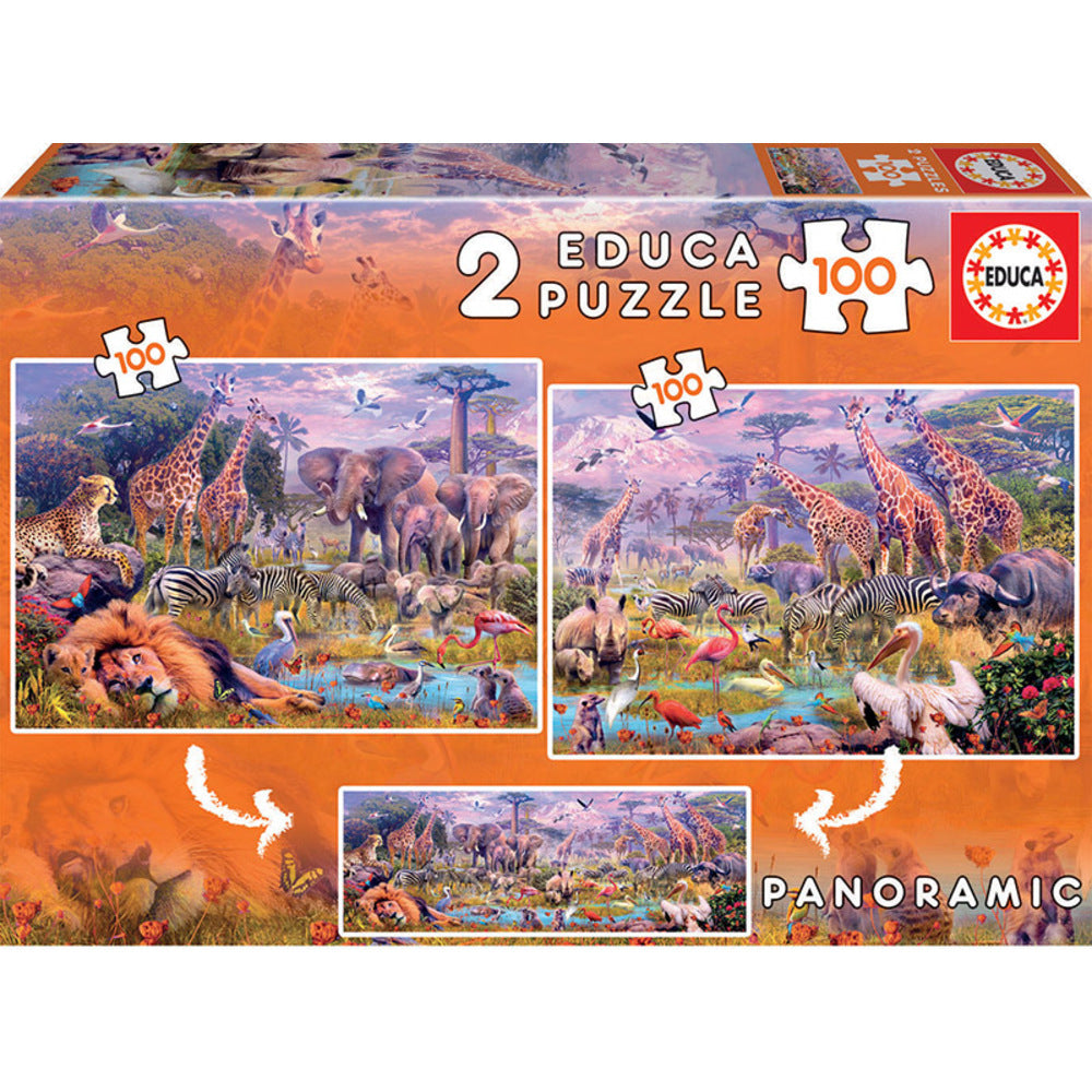 Rompecabezas Educa Animales Salvajes Panoramic 2 X 100 Piezas