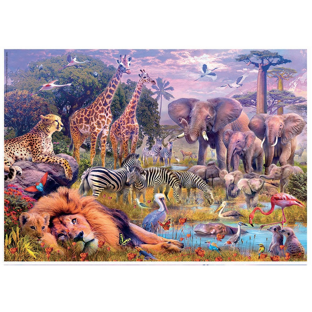 Este rompecabezas tiene dos imágenes de gran calidad y detalle, que muestran diferentes animales salvajes en sus hábitats. El rompecabezas tiene piezas de cartón grueso y resistente, con un encaje perfecto y un acabado mate. Además, incluye un póster a tamaño real para ayudarte a armarlo. Es un juego educativo y entretenido para los niños y niñas que les gustan los animales y los retos. Compra ahora y descubre la belleza de la vida salvaje. Monta cada puzzle de 100 piezas por separado y una vez terminados júntalos y obtendrás un fantástico puzzle panorámico. Monta cada puzzle de 100 piezas por separado y una vez terminados júntalos y obtendrás un fantástico puzzle panorámico. Contenido: dos puzzles de 100 piezas. Tamaño aproximado de cada puzzle montado: 40 x 28 cm.