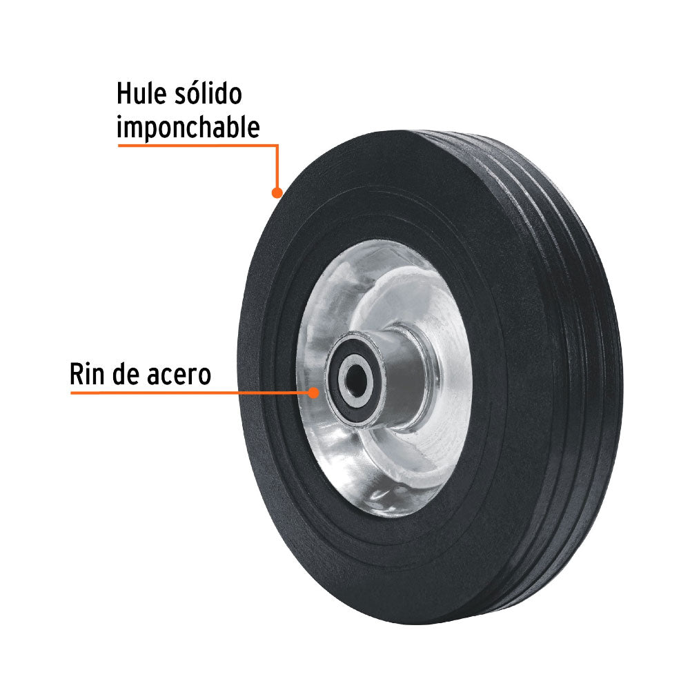 - Rueda fabricada de hule sólido de alto desempeño y rin de acero