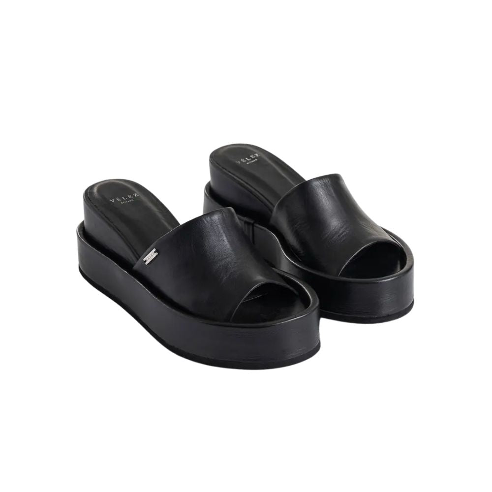 Eleva tu estilo con nuestras sandalias de plataforma, una pieza de gran confort y diseño de vanguardia; elaborada artesanalmente en cuero suave y liso, ofrece una silueta destalonada y contemporánea icónica. La plataforma, revestida en cuero, aporta sofisticación y equilibrio. Perfectas para complementar desde vestidos románticos hasta pantalones elegantes, estas sandalias exaltan la belleza natural del cuero y la artesanía detrás del trabajo manual Vélez.