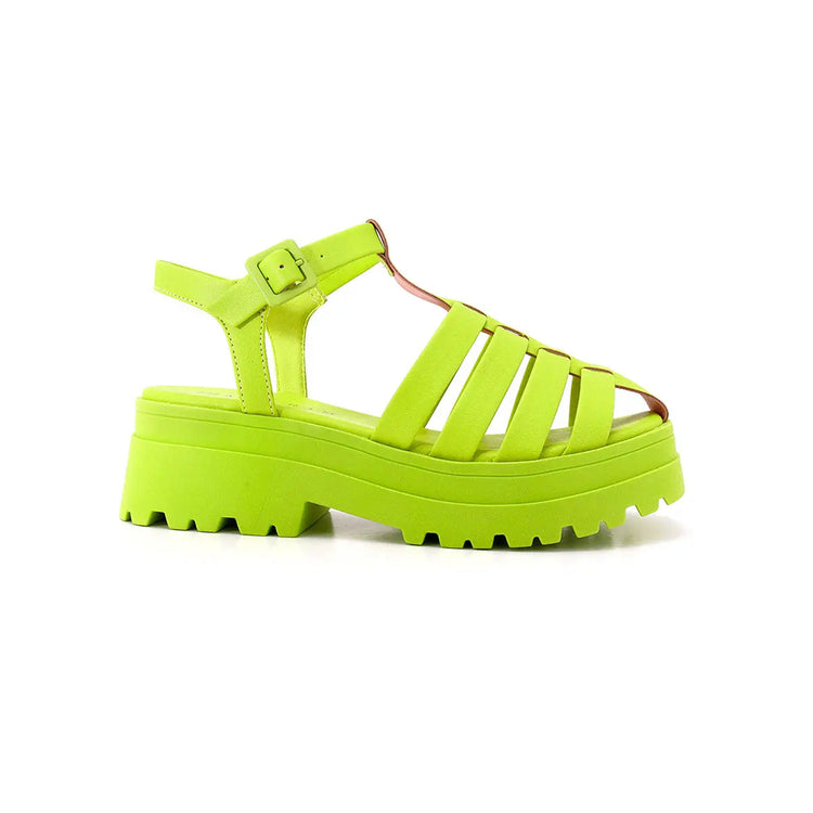Sandalia de suela tractora, tiene tiras medianas entrelazadas cubriendo la puntera y el empeine, cerrando con hebilla en el lateral. Con un diseño moderno y fashionista, el modelo brinda comodidad y un toque de estilo para la rutina urbana.