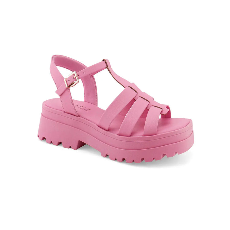 Sandalia tractorada tiras gruesas que dejan los dedos al descubierto con un detalle de hebilla en el tobillo el toque ideal de estilo para la rutina urbana.