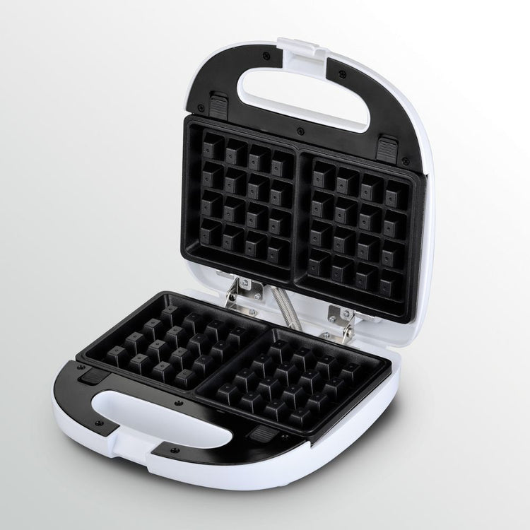 - Placas intercambiables para: sandwich, waffles, plancha, grill y omelettes.