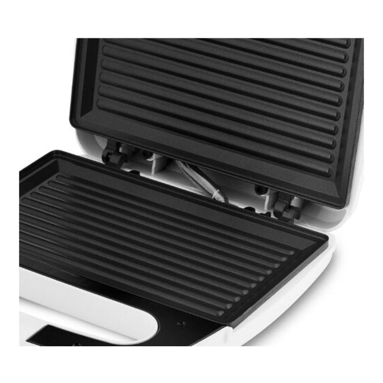 La Sandwichera Grill Panini no es solo una sandwichera, dispone de dos cavidades para elaborar hasta dos sándwiches a la vez perfectamente sellados y compactos. La ayuda que necesitas lo sepas o no. Gracias a sus pilotos luminosos de conexión y temperatura, obtendrás resultados rápidos e increíbles. Despídete de los sandwiches quemados.