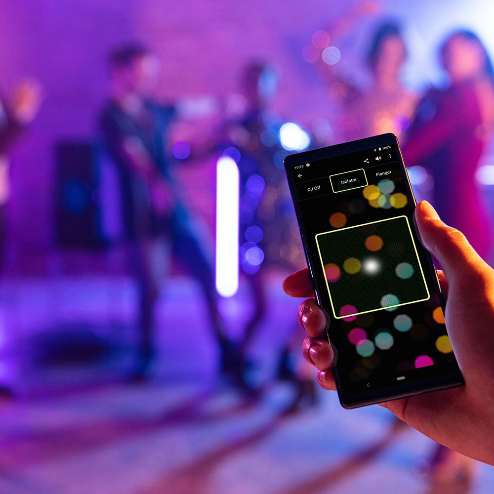Siente el ritmo de tus pistas favoritas con tweeters de alta eficiencia y JET BASS BOOSTER. Disfruta de luz de parlante de múltiples colores y personaliza tu fiesta con la lista de reproducción de la fiesta y la clasificación de karaoke gracias a la aplicación Fiestable. Las asas facilitan el transporte como nunca.
