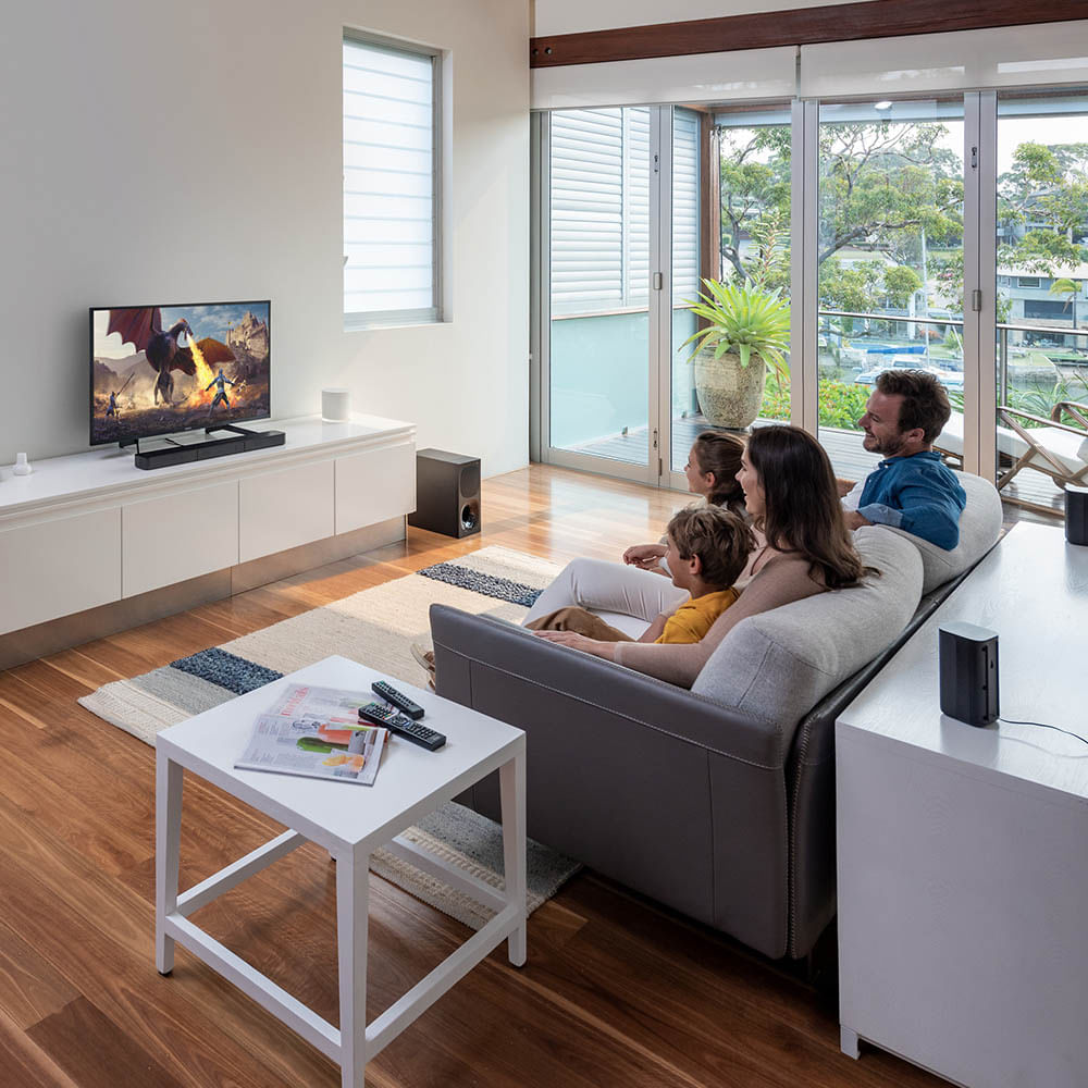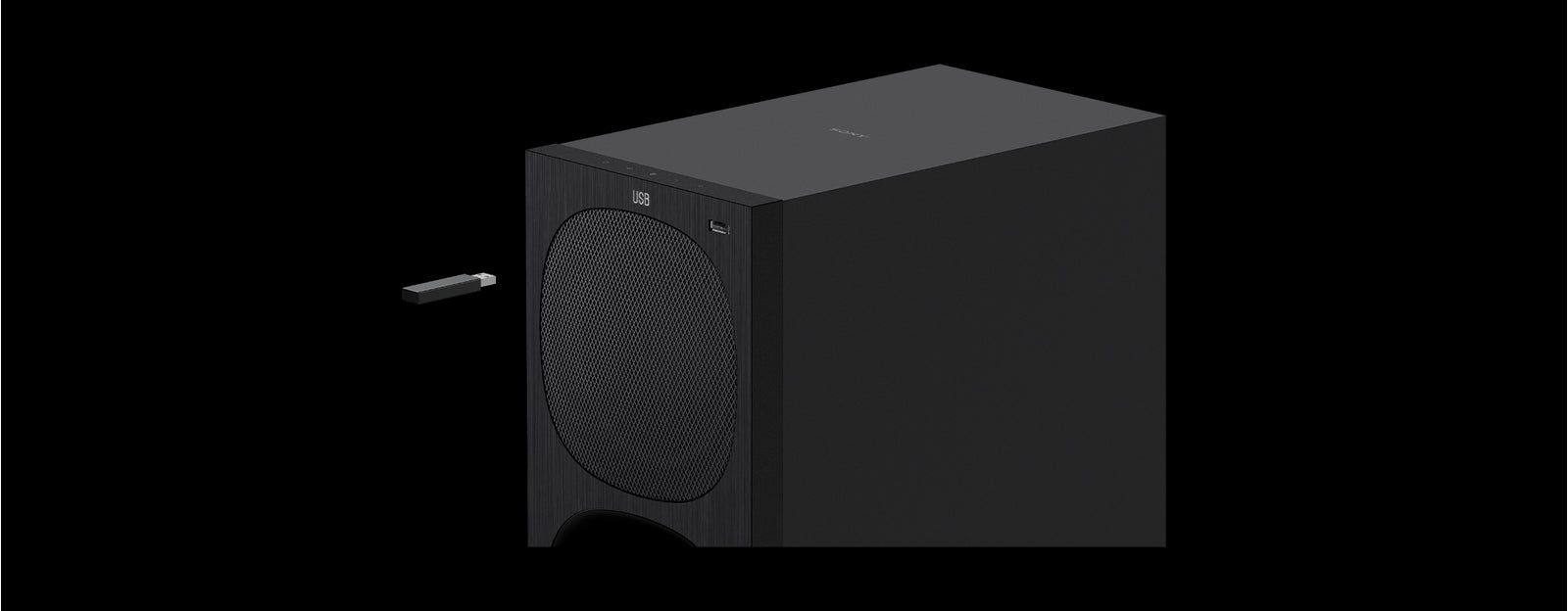 Experimenta un auténtico sonido Surround de 5.1 canales. Los parlantes posteriores con cable, una barra de sonido de 3 canales y un subwoofer externo con cable se combinan para generar un potente sonido de cine, mientras que la conectividad USB y Bluetooth® hacen que sea muy sencillo reproducir tu música favorita. Potencia de salida total: 400 W Auténtico sonido surround de 5.1 canales Subwoofer y parlantes posteriores cableados.