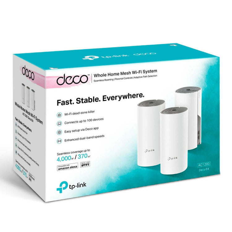 Deco E4 es la forma más sencilla de garantizar una fuerte señal Wi-Fi en cada esquina de tu hogar, cubre más 260 metros cuadrados.