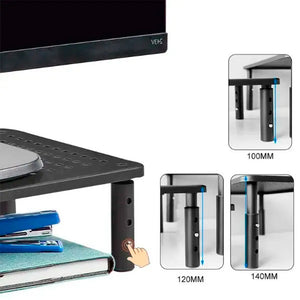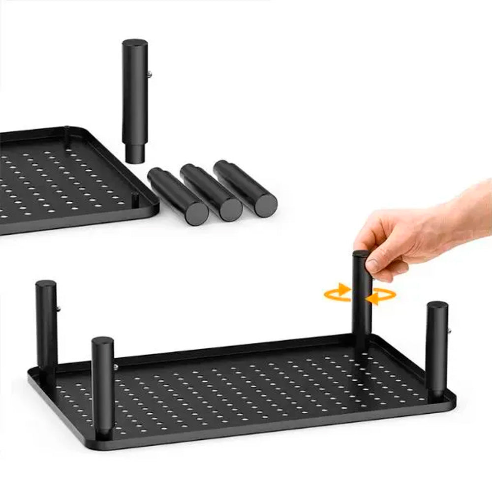 - Diseño de Tres Niveles: Con tres niveles de plataforma, este soporte proporciona un espacio adicional para organizar tus dispositivos, liberando espacio en tu escritorio y manteniendo todo al alcance de tu mano.