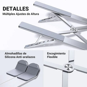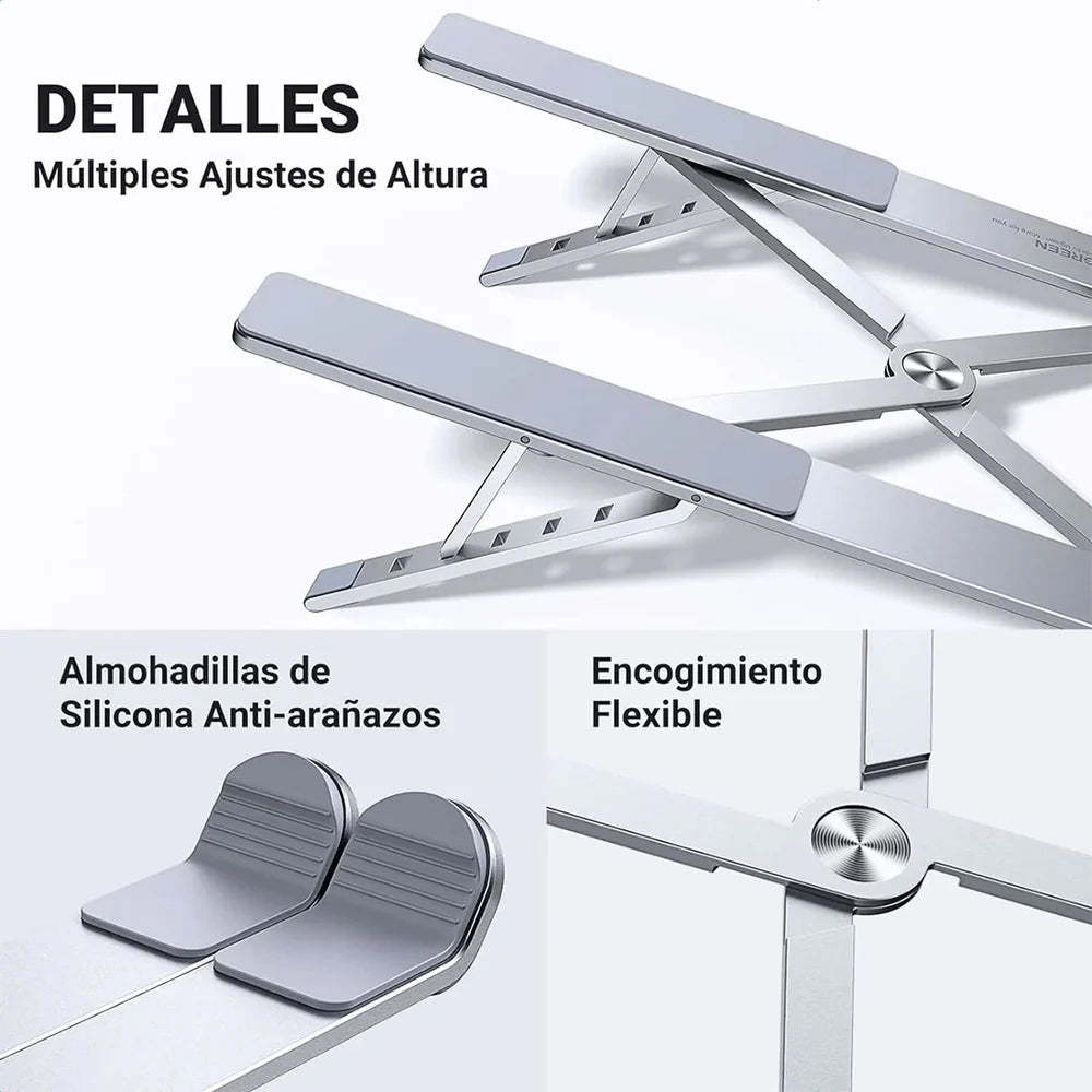 • Construcción robusta: Hecho de aleación de aluminio anodizado, garantiza estabilidad incluso con laptops más grandes y pesadas.