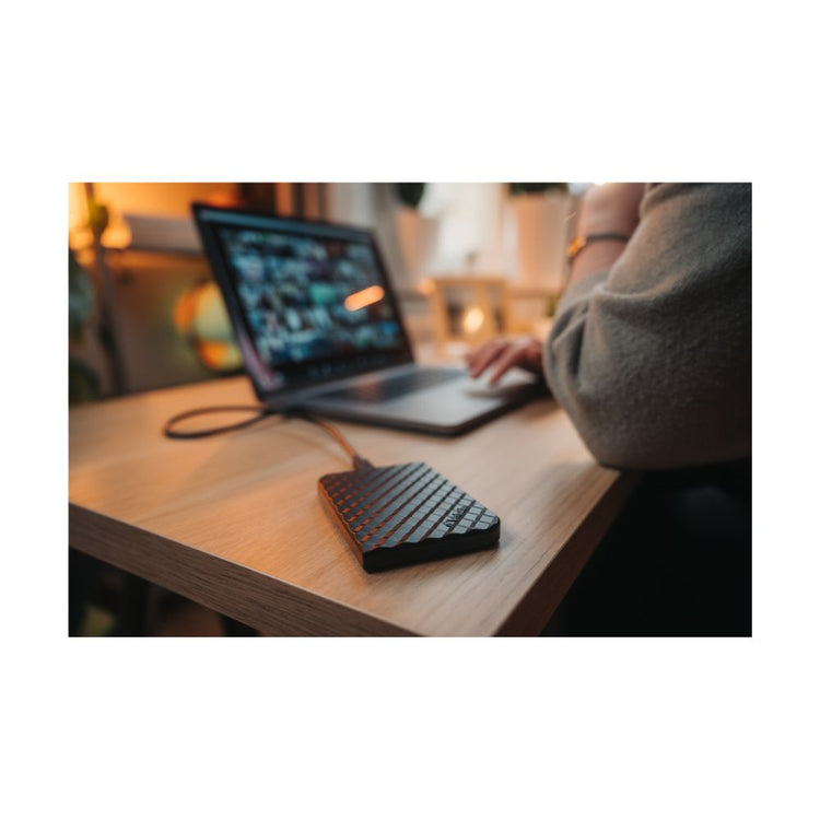 Compatible con sistemas operativos de PC y Mac, la interfaz de la SSD es USB 3.2 GEN 1, con una conexión USB-C para velocidades de transferencia de datos extremadamente rápidas. La SSD realiza transferencias de datos de gran tamaño con rapidez, lo que la hace ideal para editar vídeo, mover grandes cantidades de datos o maximizar el rendimiento de los juegos. El paquete incluye un cable de USB-C a USB-A y un adaptador de USB-A a USB-C para la conexión a distintos dispositivos.