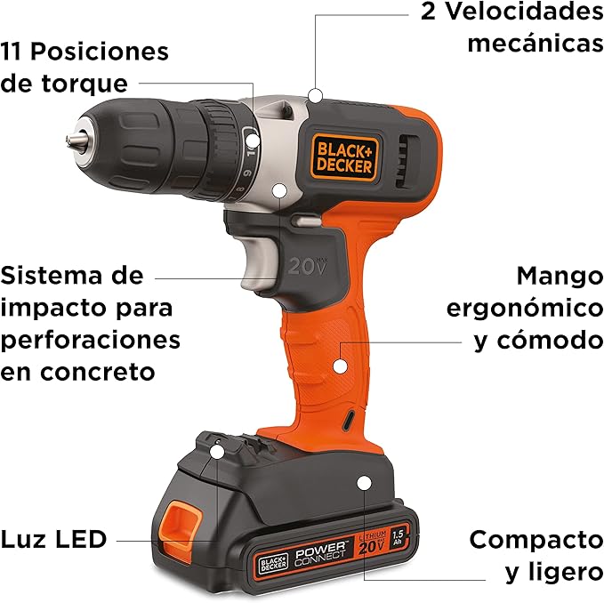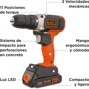 Taladro/Atornillador Black and Decker 3/8″- 20V MAX inalámbrico 2 velocidades