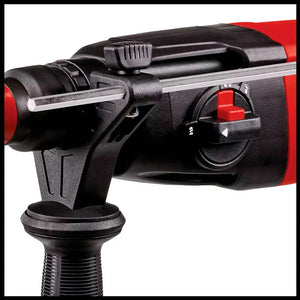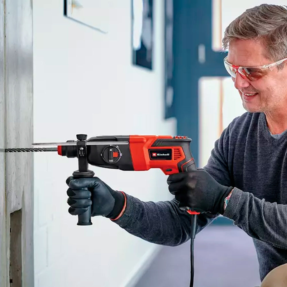 El martillo perforador es el modelo básico perfecto y combina el rendimiento con un diseño compacto. Su bajo peso lo hace ideal para aplicaciones flexibles, incluso por encima de la cabeza. Como potente modelo todoterreno, el Einhell TC-RH 620 4F dispone de cuatro funciones: perforación, taladrado de percusión y cincelado con y sin fijación. Gracias a los impulsos del impacto, el material se “rinde”, el filo penetra en el material mediante un movimiento de rotación y lo rompe. Todas las funciones se ajustan desde el interruptor de posición, el mecanismo neumático de percusión garantiza una excelente propulsión.