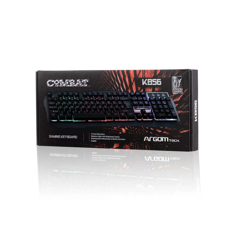Como parte de nuestra colección de juegos, el teclado Combat Gaming es todo lo que necesitas para mejorar tu juego. Recarga, apunta y dispara con este teclado especialmente diseñado para juegos, de construcción robusta y con todas las funciones necesarias para vencer a tu oponente. Juega en la oscuridad con sus luces arcoíris, teclas iluminadas y un estilo elegante que sin duda realzará tu campo de batalla.