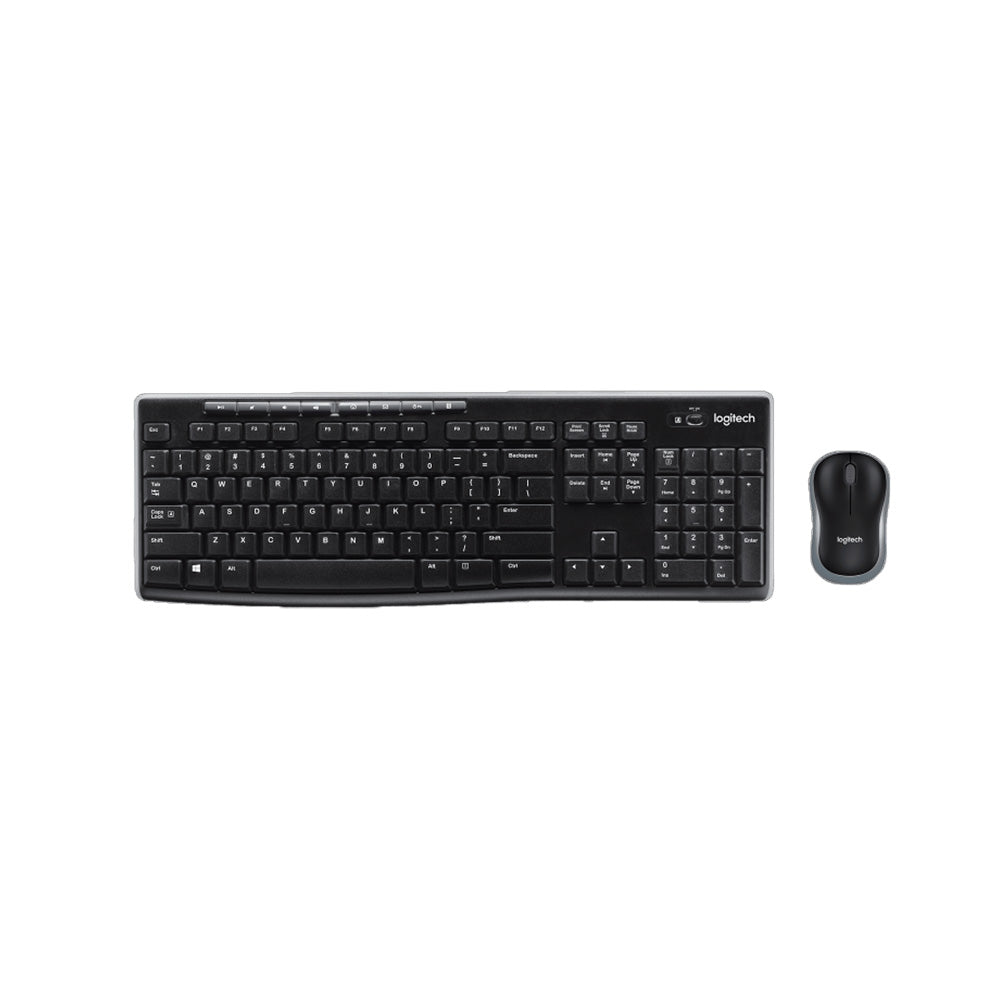 La combinación inalámbrica MK270 combina la conveniencia y el confort de un teclado de tamaño normal con un compacto mouse contorneado. Con teclas multimedia, teclado numérico y preciso control del cursor, el trabajo puede ser mucho más fluido. El radio de acción inalámbrico depende de las condiciones del entorno y de los dispositivos. La tecnología inalámbrica sin demoras facilita los preparativos y ahorra espacio en la mesa.