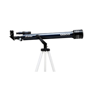 El telescopio TASCO 30060402 Novice 60x700mm es un gran telescopio de nivel de entrada para aquellos que recién ingresan al pasatiempo de la astronomía. El alcance está hecho en China y viene con un trípode ligero, pero sigue siendo funcional. El conjunto de tubo óptico es bueno, con un adaptador para accesorios de 1.25 pulgadas.