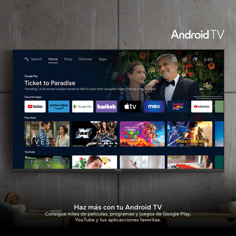 Te ofrece miles de películas, programas y juegos de Google play, YouTube y tus aplicaciones favoritas, también podrás disfrutar de tus fotos en pantalla grande, todo con tu voz. Haga preguntas a su asistente y vea las respuestas en la pantalla de su televisor, y obtenga respuestas relacionadas con lo que esta viendo, programas favoritos, personajes y actores.