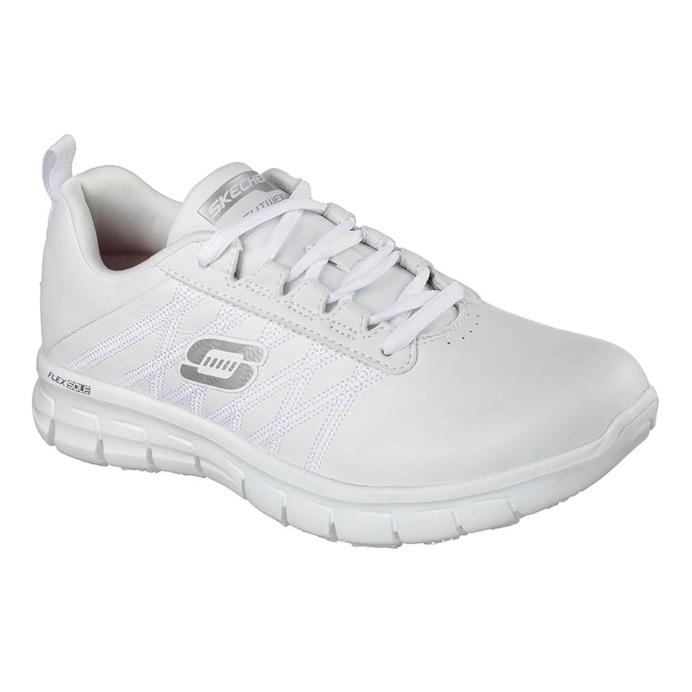 Estilo moderno y a la moda. Proporcionan comodidad y seguridad durante todo el día. El estilo deportivo, la seguridad y la comodidad durante todo el día llegan a Skechers Work Relaxed Fit®: Sure Track - Erath. Este diseño antideslizante presenta una parte superior de cuero suave con cordones en la parte delantera y una plantilla acolchada Skechers Memory Foam™.
