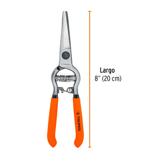 La tijera para podar Truper de 8 pulgadas es una herramienta esencial para cualquier amante de la jardinería. Con su diseño ergonómico y hojas de acero de alta calidad, esta tijera ofrece un corte preciso y limpio en ramas y tallos. Su tamaño compacto la hace ideal para trabajos delicados en el jardín, como podar plantas ornamentales o cosechar frutas y flores. Esta tijera cuenta con puntas redondeadas que evitan el maltrato de frutos, recomendada para corte de uvas.
