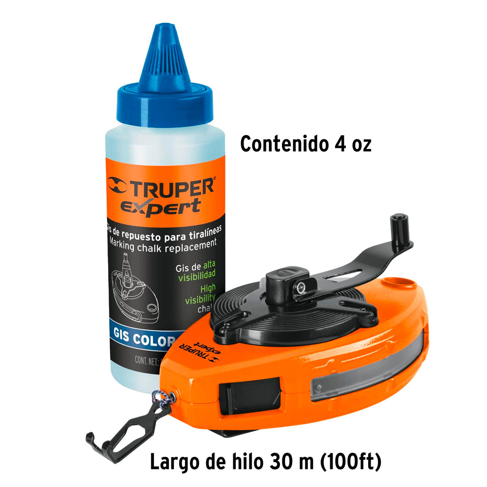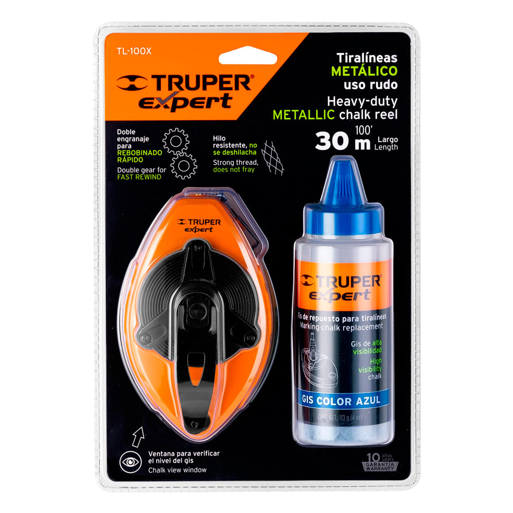Trazalíneas Truper Expert Metálico con Gis Uso Rudo 30 m 100 ft