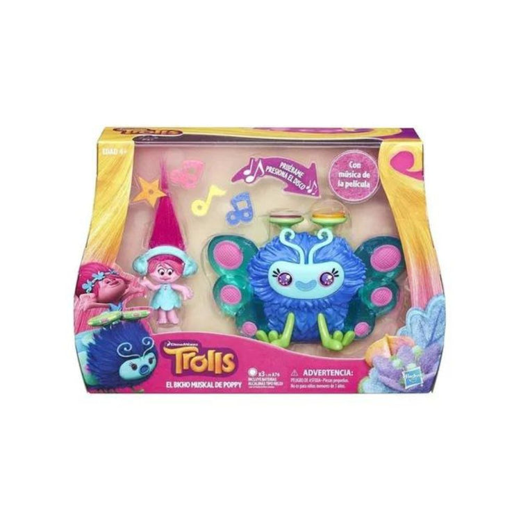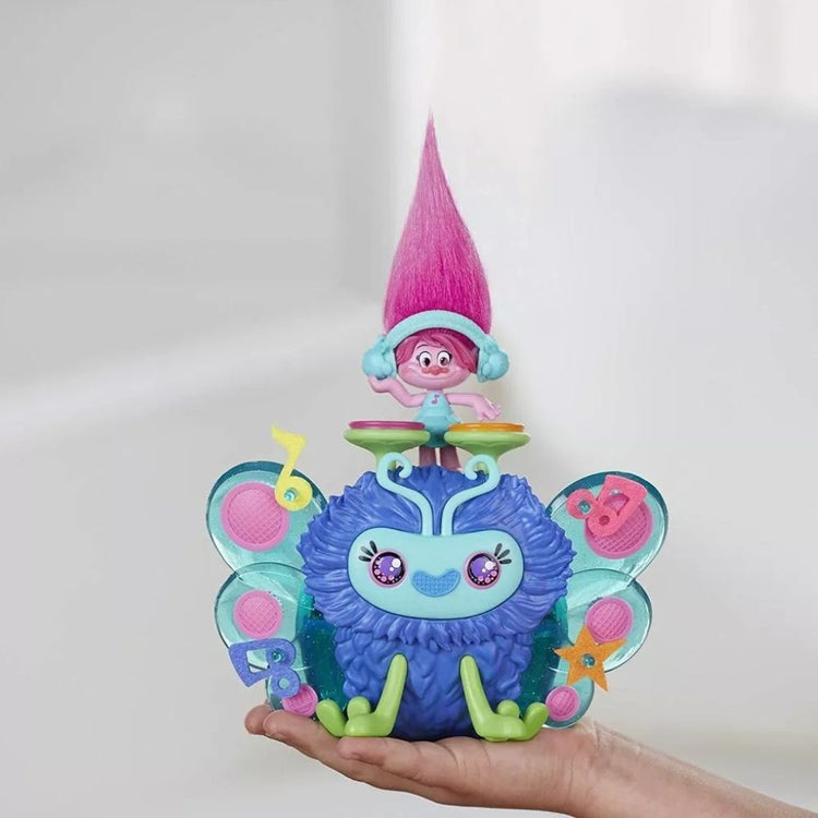 Los chicos pueden imaginar que viajan y cantan alrededor del pueblo de Trolls con el Bicho Musical de Poppy