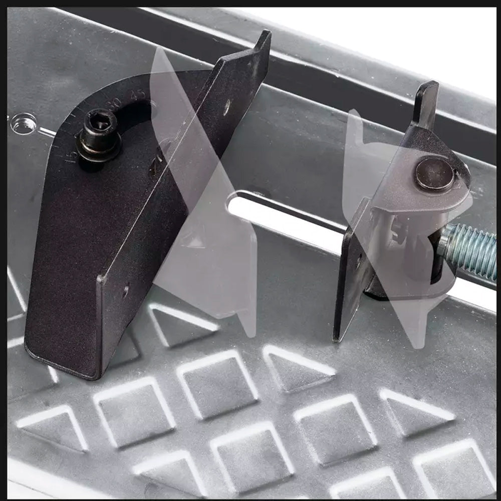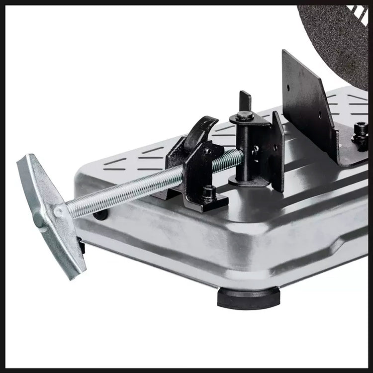El bloqueo de la cuchilla garantiza que la cuchilla se pueda cambiar de forma segura. Para un trabajo óptimo, la rueda de corte tiene un diámetro de 355 x 25,4 x 3,2 milímetros. El mecanismo de sujeción con bloqueo de liberación rápida permite realizar cortes de tamaño de ángulo de -15 grados a 45 grados.