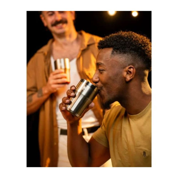 Celebrando los diseños de vasos de cerveza icónicos, los vasos térmicos Americanos de 410 ml combinan su acabado sofisticado y diseño ergonómico, manteniendo su eficiencia térmica ideal para tus momentos de celebración.