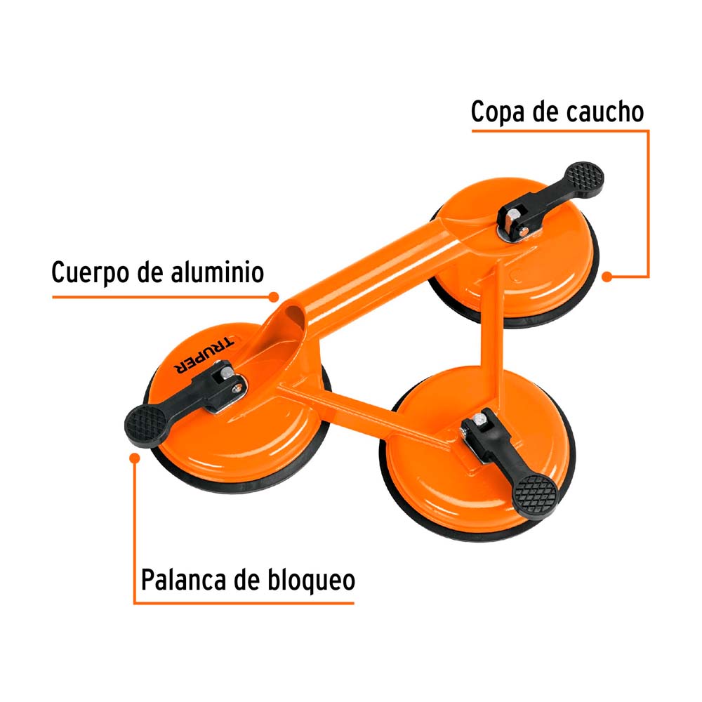 Ventosa de Aluminio Truper para Vidrio 3 Copas de Succión