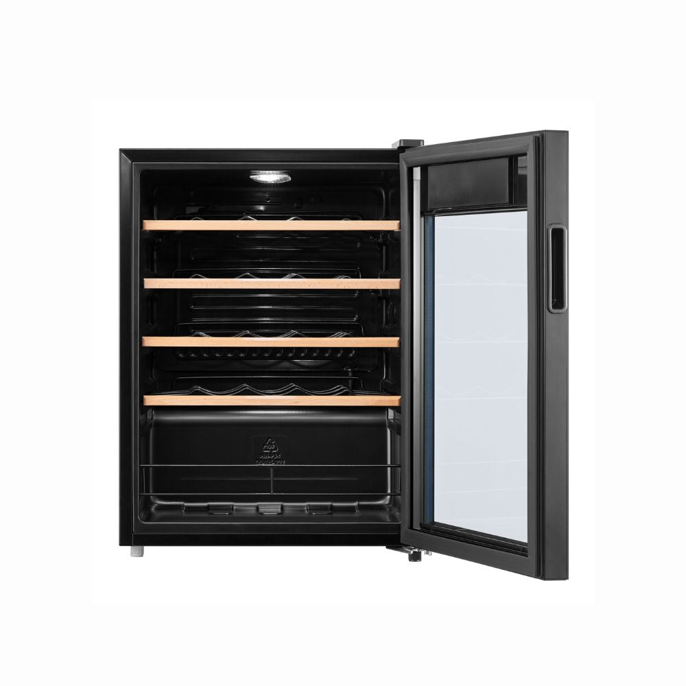 Eleva la conservación de tus vinos con la Vinera White Westinghouse, diseñada para mantener cada botella a la temperatura ideal y conservar sus propiedades. Con una capacidad para 24 botellas y 66 litros, es perfecta para hogares, restaurantes o bares que valoran la calidad y el diseño. Su elegante puerta de cristal transparente, estantes cromados deslizables y control electrónico de temperatura te permiten almacenar y visualizar tu colección con estilo y precisión. Además, ofrece opciones de marco de puerta en rojo, blanco o acero inoxidable brillante y estantes de madera para un toque aún más sofisticado.