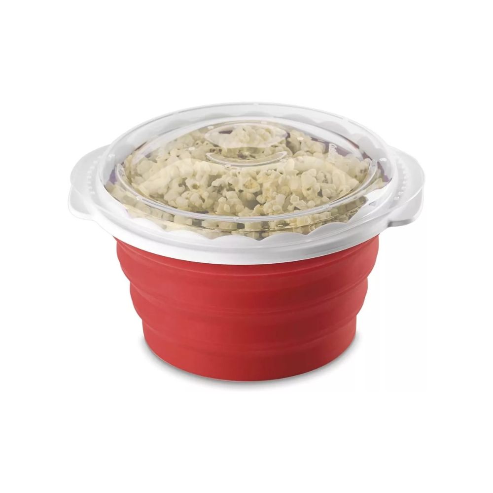 Nuestro tazón de silicona Pop and Serve Popcorn Maker hace estallar los granos sin necesidad de aceite para obtener un refrigerio más ligero y saludable. ¡Agregue sus propios saborizantes como mantequilla, sal o especias, o déjelo como está para obtener un refrigerio saludable listo para servir directamente del tazón! El recipiente de silicona es fácil de limpiar y se pliega para un almacenamiento cómodo. Divertido de usar y fácil de limpiar.